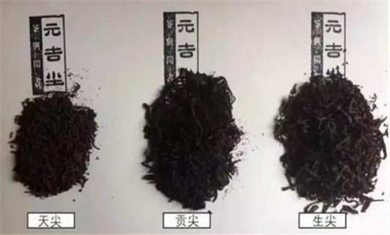原料等級(jí)不同:天尖是用相對(duì)而言最細(xì)嫩的一級(jí)黑毛茶篩制而成,貢尖和生尖則分別由二、三級(jí)黑毛茶制成。