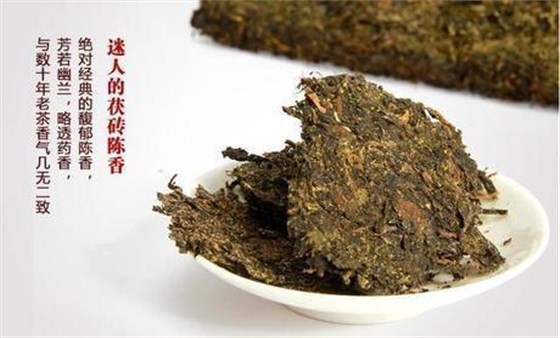 最有特色的磚茶,茯磚中獨(dú)有的冠突散囊菌,是一種黃色的有益菌,這種益生菌在千年靈芝上偶有發(fā)現(xiàn),長(zhǎng)期飲用,能夠促進(jìn)調(diào)節(jié)新陳代謝,增強(qiáng)人體體質(zhì)、延緩衰老,對(duì)人體起著有效的藥理保健和病理預(yù)防作用。因其早期只在伏天加工,故叫"伏茶";又因其口感及藥效似土茯苓而被稱為"茯茶"。以黑毛茶為原料,通過(guò)破碎、篩分、發(fā)酵、蒸制、機(jī)壓、烘干等工藝程序精制而成。松緊均勻,金花蕃蕪,香氣純正,滋味醇和微甘,湯色紅濃明亮,葉底勻齊尚嫩。隨著存放時(shí)間的延長(zhǎng),獨(dú)特的陳香醇味越來(lái)越突出。